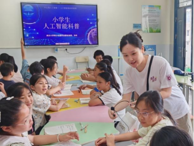 今年暑期,团队深入江苏盐城、南京以及湖南岳阳的街道、社区,用两个多月时间为近千名乡村少年带来红色基因传承教育、中华经典浸润教育、非遗技艺手工教育和数智赋能文化创新教育课程。团队融入人工智能通识课,打造“AI+传统文化”智慧课堂与沉浸式科技研学活动,让古老智慧在科技赋能下迸发时代活力。《和AI斗诗》《AI复活古人:一场穿越时空的对话》《用科技让传统文化“活”下去》等课程让青少年儿童在科技与传统、时代与历史的交融中感受传统文化生生不息的魅力。